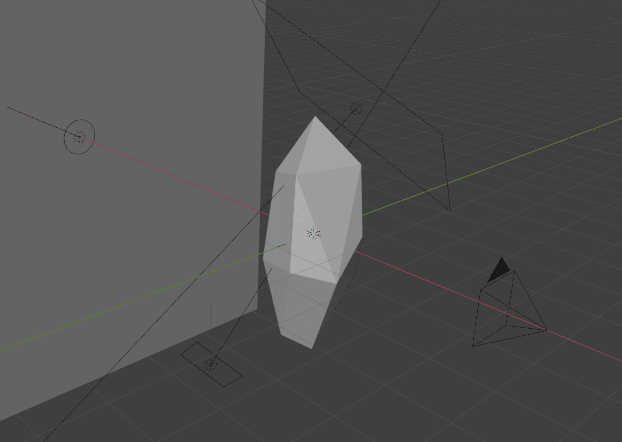 I placed a background light for the glows which would also provide shadows for the placed plane. The final lights I added were spotlights angled diagonally at the crystals to highlight the reflections and provide some different colour hues.
