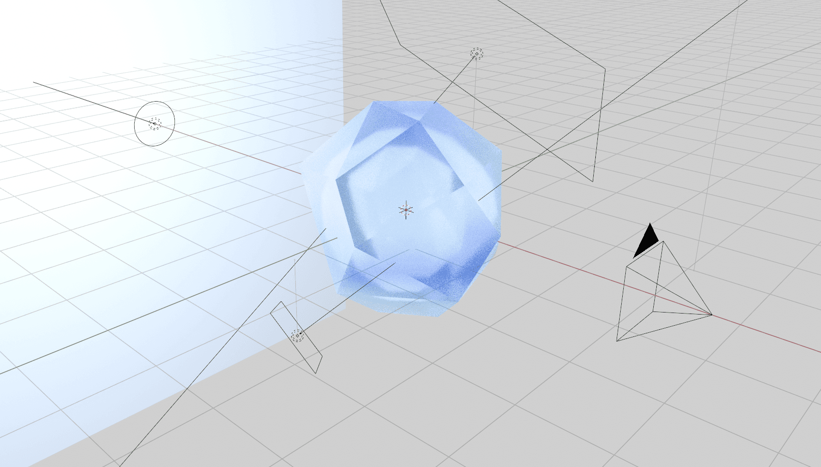 The final lights I added were spotlights angled diagonally at the crystals to highlight the reflections and provide some different colour hues.